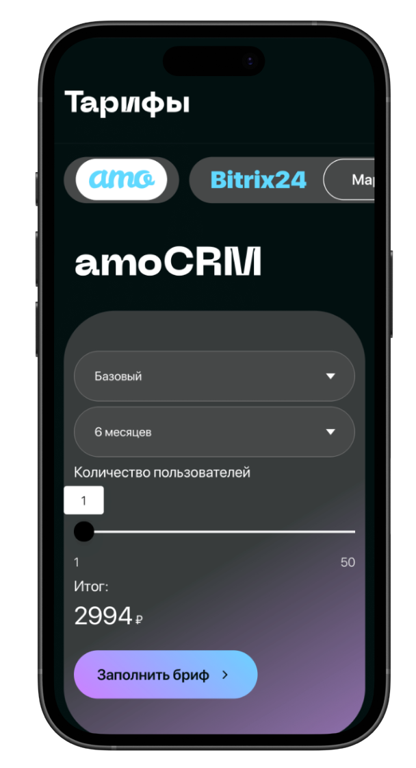 Мы адаптировали макет тарифов под ограничения платформы, сохранив при этом визуальную идентичность и обеспечив корректное отображение всех элементов.